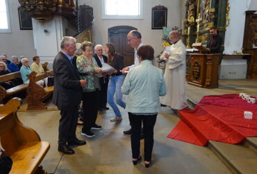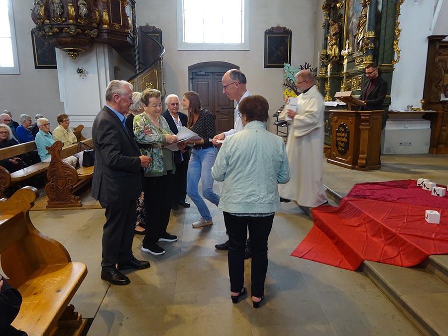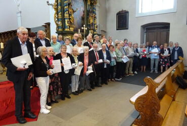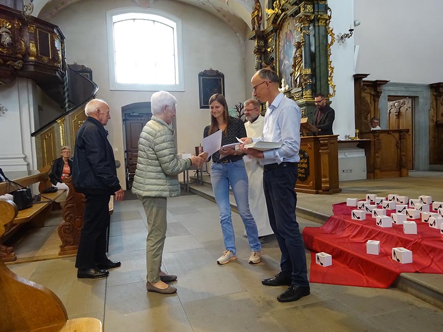 Am Ende des Gottesdienstes, nach einem festlichen «Grosser Gott wir loben dich» wurden dann die einzelnen zu ehrenden Sängerinnen und Sänger persönlich aufgerufen und erhielten eine Urkunde und ein kleines Geschenk, vor allem aber ein herzliches Dankeschön seitens des Kirchenmusikverbands für ihr langjähriges kostbares Engagement in der Kirchenmusik.
